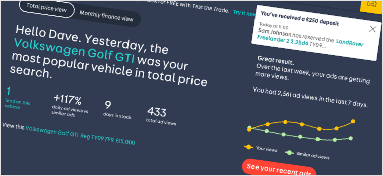 With lots of incredible data available to us, I wanted to give the experience more personalisation and actionable tasks. By simply pulling through the customers name, and most popular searched vehicle from their advertised stock, we were soon able to offer a unique personalised view of portal to individual dealerships.
