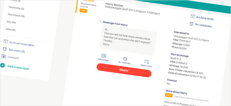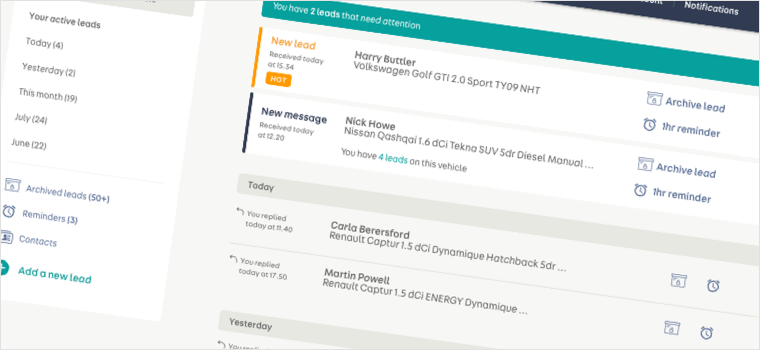 This area was designed to feel like a traditional inbox whereby retailers could keep track of all leads and reply to them via a messaging service.